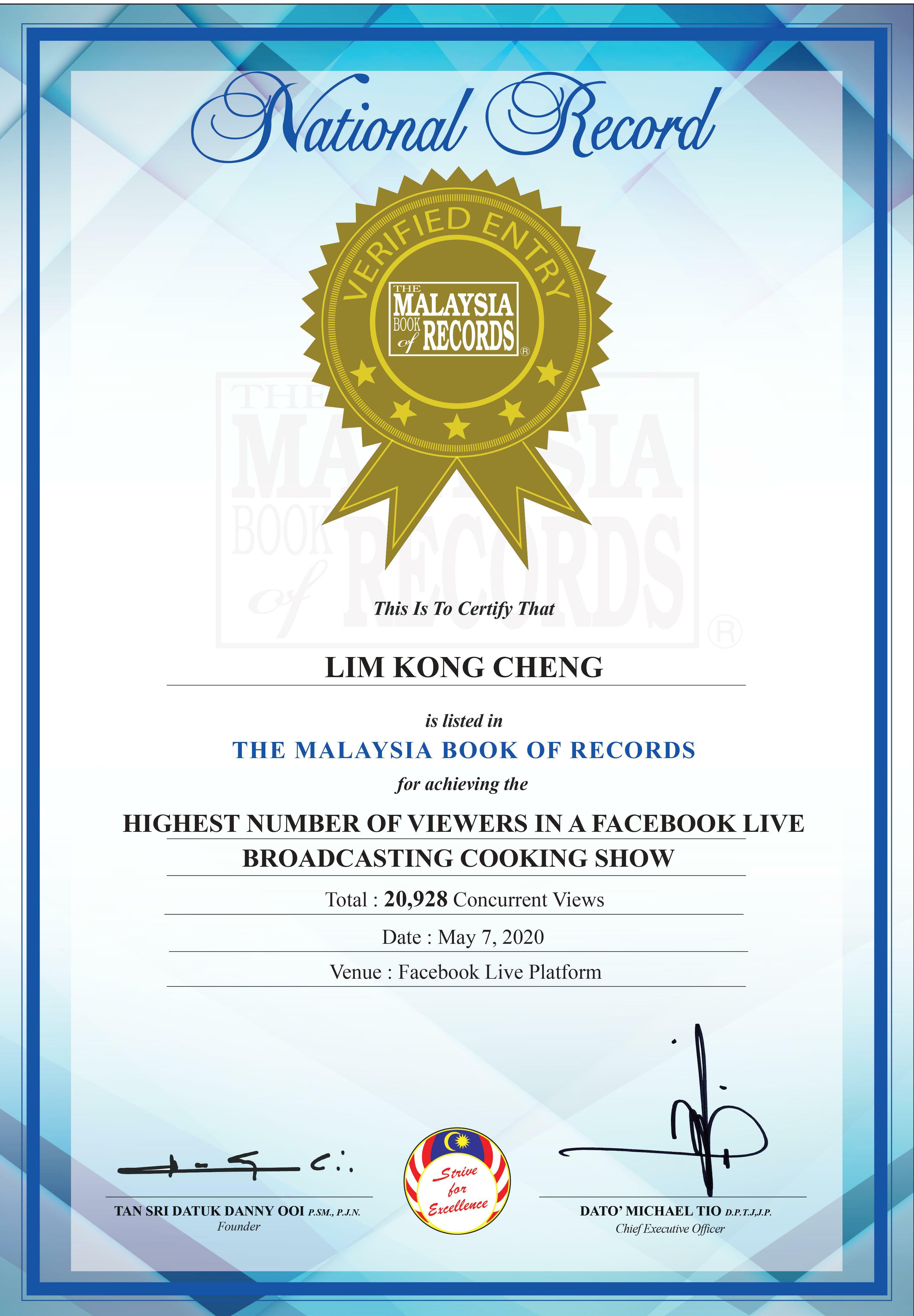 从3月25日开始了首场的直播,至今 [表弟好煮意] 已刷新了3张马来西亚纪录大全的三项纪录[最多人在线观看的直播烹饪节目]、[最多场个人直播模式的烹饪节目] 及 [最多道菜肴的个人直播烹饪节目]。得到三张的纪录大全后,「表弟」仍然承诺粉丝会持续365天,每天傍晚五点半准时为大家呈现直播烹饪节目。